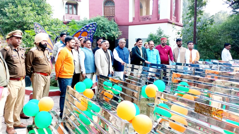 Kanpur news: कानपुर प्राणि उद्यान के चकोर प्रेक्षागृह लॉन में मुख्य अतिथि मानवेन्द्र सिंह, उत्तर प्रदेश विधान परिषद सदस्य, ने प्राणि उद्यान का शुक्रवार को दौरा किया। उन्होंने इस अवसर पर कानपुर प्राणि उद्यान के अधिकारियों को 50 स्टील बेंचें प्रदान करके आने वाले दर्शकों के लिए आराम से बैठने की सुविधा उपलब्ध कराई।