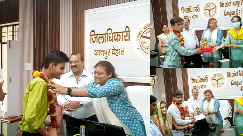 कानपुर देहात का नाम रोशन करने वाले कुशाग्र पांडे को डीएम ने किया सम्मानित