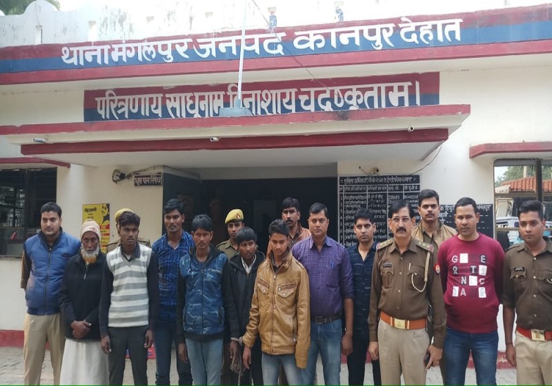 कानपुर देहात-जिले के पुलिस अधीक्षक के निर्देशन में अपर पुलिस अधीक्षक व परिक्षेत्र अधिकारी डेरापुर के कुशल मार्गदर्शन मे अपराधियों के विरुद्ध चलाए जा रहे अभियान में पुलिस व स्वाट टीम को उस समय बड़ी सफलता हासिल हुई। जब मुखबिर की सूचना पर लूट की घटना को अंजाम देने जा रहे लुटेरों को घेराबंदी कर गिरफ्तार कर लिया गया। आपको बताते चलें कि मंगलपुर थाना के संदलपुर झींझक मार्ग पर स्थित प्राइमरी स्कूल के पीछे शातिर बदमाश मध्यरात्रि डकैती की योजना बना रहे थे। तभी मंगलपुर पुलिस व स्वाट टीम ने घेराबंदी कर 6 लुटेरों को घटनास्थल पर गिरफ्तार कर लिया। इस दौरान रात्रि का फायदा उठाकर 4 लुटेरे भाग निकलें। पकड़े गये अभियुक्तो का नाम दीपू , राकेश, अमरीश उर्फ विपिन, सुरेश, बब्बन उर्फ सतीश द्वारा पूर्व मे कई चोरी व लूट की घटना करना स्वीकार किया है।