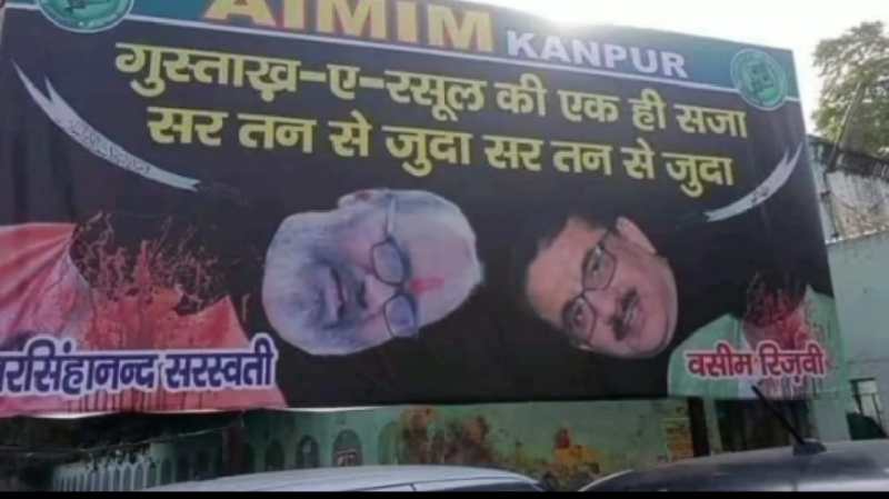 कानपुर में वसीम रिजवी और नरसिंहानंद सरस्वती सर कटी व आपत्तिजनक होर्डिंग!