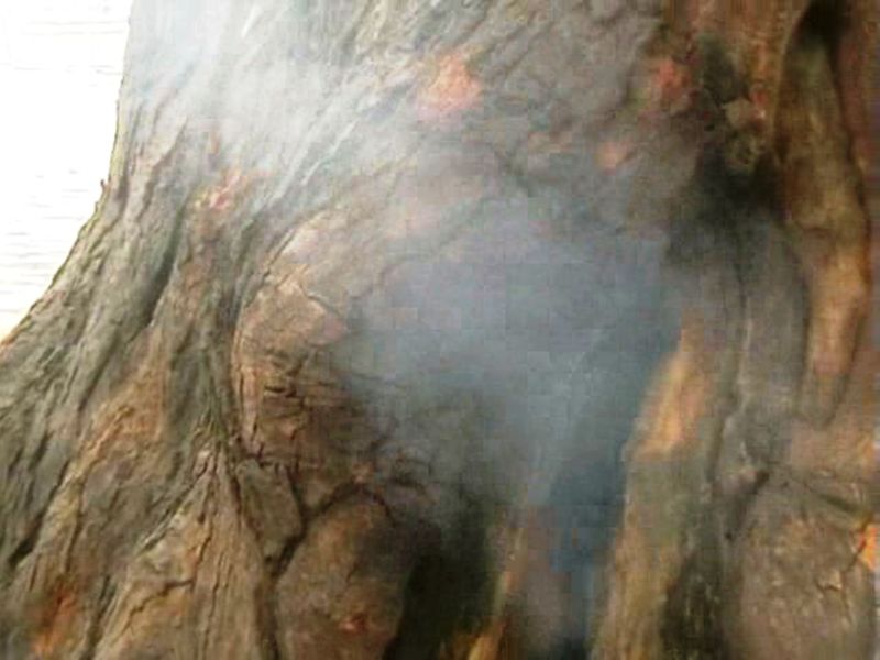 एसएसपी आवास के पास एक पुराना नीम का पेड़ है। शनिवार की देररात पेड़ के नीचे से एकाएक धुआं निकलने गला। आसपास के लोगों को लगा कि आग लग गई है और वह दौड़ पड़े। मौके पर जाकर देखा तो पता चला कि आग नहीं नीम का पेड धुआं उगल रहा है। यह नजारा देख हड़कंप मच गया। रात में ही लोगों की भीड़ उमड़ पड़ी और कुछ इसे ईश्वर का चमत्कार तो कुछ भूत-प्रेत बताने लगे। सूचना पर पहुंची पुलिस ने लोगों को वहां से हटाया और दमकल को जानकारी दी। दमकल की गाडियां पहुंची, और पानी का छिड़काव कर ध्ुएं को रोकने का प्रयासय किया, लेकिन सफल नहीं हो पाए।