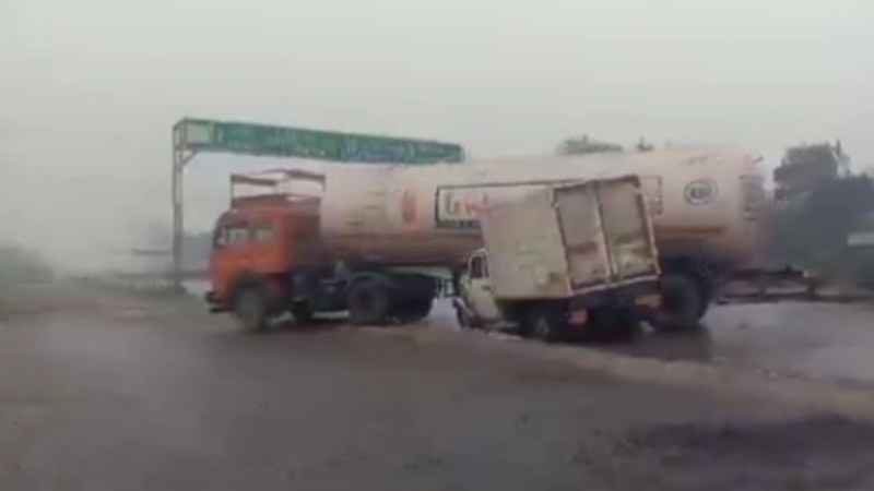 Collision between LPG tanker and pickup कानपुर में एलपीजी टैंकर और पिकअप के बीच जबरदस्त टक्कर हो गई। टक्कर जबरदस्ती की एलपीजी गैस लीकेज जिससे मौके पर हड़कंप मच गया। सूचना पाकर मौके पर भारी संख्या में पुलिस बल पहुंच गई। दोनों तरफ के यातायात को रोक दिया गया। फायर ब्रिगेड की कई गाड़ियों को भी मौके पर बुला लिया गया। इस संबंध में सांसद स्थापित करने बताया कि हादसे में शामिल वाहनों को सड़क से हटा दिया गया है और यातायात धीमी रफ्तार से चालू किया गया है। मामला चकरपुर मंडी और सचेंडी के बीच का है।