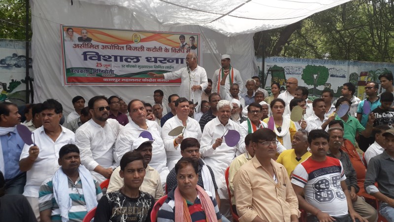 आसमान से बरसती आग के बीच दोपहर 12 बजे सिविल लाइंस के केस्को मुख्यालय के सामने मंच पर जुटे कांग्रेसियों ने एकस्वर में कहाकि प्रदेश को सबसे ज्यादा राजस्व देने वाला कानपुर शहर बिजली के मामले में सौतेलेपन का शिकार है। शहर कांग्रेस अध्यक्ष हरप्रकाश अग्निहोत्री बोले कि बिजली की किल्लत के कारण मरीजों की मौत का ग्राफ उठा है। बच्चे-बुजुर्ग बीमार पड़ रहे हैं। कांग्रेस के वरिष्ठ नेता आलोक मिश्र ने कहाकि जबरदस्त बिजली कटौती के कारण कारोबार चौपट है। रोजी-रोटी का संकट खड़ा है। केंद्र से लेकर शहर तक में भाजपा की सरकार है, बावजूद बिजली मुहैया कराने के नाम पर बहानेबाजी जारी है। प्रदेश कांग्रेस कमेटी के मंत्री कृपेश त्रिपाठी ने कहाकि मोदी और योगी ने प्रत्येक गांव को शहर बनाने का वादा किया था, लेकिन यहां उल्टी गंगा बहने लगी है। महानगरों को गांव से बदतर बना दिया गया है। कांग्रेसियों के धरने में पूर्व केन्द्रीय मंत्री श्रीप्रकाश जायसवाल, विधायक सोहेल अंसारी, शंकरदत्त मिश्र, बृजेश त्रिपाठी, अशोक धानविक, शरद मिश्रा, इकबाल अहमद, पवन गुप्ता, प्रमोद जायसवाल, अमीम खां, आमोद त्रिपाठी, अमनदीप सिंह, अश्वनी चढ्ढा, रफत जमाल, अरुणेश निगम कमल जायसवाल, अतहर नईम, मेवालाल कठेरिया, ग्रीनबाबू सोनकर समेत डेढ़-दो सौ लोग मौजूद रहे।