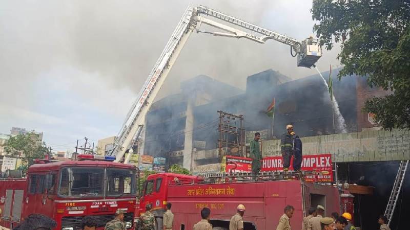 हमराज कंपलेक्स के पहली मंजिल की दुकान में शार्ट सर्किट से आग लग गई जो धीरे-धीरे भड़कते हुए ऊपर की मंज़िल स्थित दुकानों तक जा पहुंची।