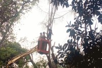 घटना की सूचना मिलते ही क्षेत्र में हड़कंप मच गया। स्थानीय लोगों ने तुरंत पुलिस और फायर ब्रिगेड को सूचना दी। मौके पर पहुंची पुलिस ने केस्को अधिकारियों को बुलाकर पहले बिजली सप्लाई बंद कराई, ताकि किसी अन्य हादसे की आशंका न रहे। इसके बाद केस्को की टीम हाइड्रोलिक क्रेन लेकर पहुंची। काफी ऊंचाई पर पेड़ और हाईटेंशन लाइन के बीच शव फंसा होने के कारण उसे नीचे उतारने में काफी कठिनाई हुई। करीब एक घंटे की कड़ी मशक्कत के बाद क्रेन की मदद से युवक के शव को सुरक्षित नीचे उतारा गया। इसके बाद पुलिस ने शव को कब्जे में लेकर पोस्टमार्टम के लिए भेज दिया।