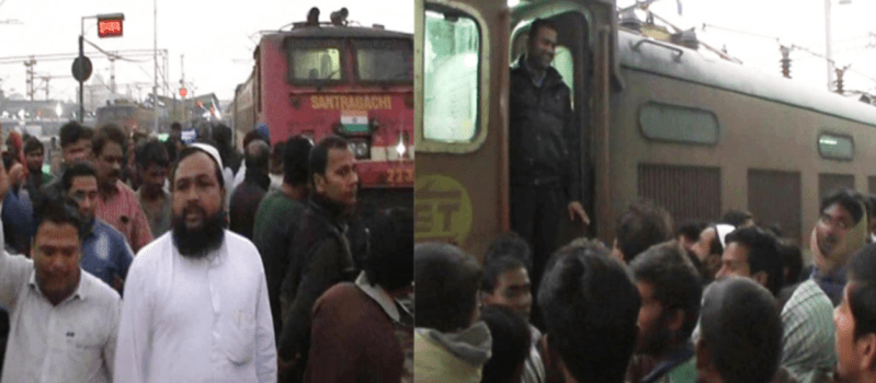 कानपुर सेंट्रल स्टेशन पर यात्रियों ने लोकमान्य तिलक एक्सप्रेस के दो घण्टे तक रुकी होने के चलते यात्रियों ने जमकर हंगामा किया। वहीं दूसरे प्लेटफार्म पर खड़ी राजधानी एक्सप्रेस को रोक कर यात्रियों ने जमकर बवाल काटा। दरअसल हाल में ही पुखरायां में हुए इन्दौर-पटना एक्सप्रेस हादसे के बाद यात्री काफी जागरूक हो गए हैं और जरा सी भी लापरवाही को नदरअंदाज नहीं करना चाहते हैं। कोहरे और ठंड की वजह से कई ट्रेनें घंटों लेट चल रही हैं। परेशान यात्रियों ने स्टेशन पर दो घंटे से खड़ी गोरखपुर लोकमान्य तिलक एक्सप्रेस के सिग्नल प्वाइंट खराब होने पर जमकर हंगामा किया। यहां तक कि यात्रियों ने दूसरे प्लेटफार्म पर खड़ी राजधानी एक्सप्रेस को रोककर रेलवे कर्मचारियों के खिलाफ जमकर नारेबाजी की। यह देखकर आधिकारियों के हाथपांव फूल गए। बवाल की जानकारी पर स्टेशन अधीक्षक व जीआरपी प्रभारी मौके पर पहुंचे। स्टेशन अधीक्षक आरपीएन त्रिवेदी ने बताया कि रेलवे के कर्मचारियों द्वारा सिग्नल प्वाइंट को सही करा दिया गया है, जिसके बाद दोनों ट्रेनों का अपने-अपने गंतव्य स्थानों के लिए रवाना कर दिया गया।