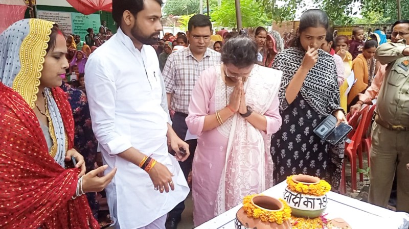 "मेरी माटी मेरा देश" अभियान के चलते डीएम नेहा जैन ने बुधवार को छोटे बच्चों, युवक मंगलदल, महिला मंगलदल व ग्रामीणवासियों को शपथ दिलायी। शपथ दिलाने के बाद समस्त बच्चों युवक मंगलदल, महिला मंगलदल व ग्रामीणजनों से अमृत कलश में मिट्टी डलवाकर इस कार्यक्रम के आयोजन को शफलीभूत बनाने की तरफ कदम भी बढ़ाया साथ ही इस मौके पर विद्यालय के प्रांगण में पौधरोपण कर पर्यावरण संरक्षण का संदेश भी दिया।