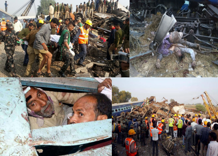 रविवार तड़के 3:10 बजे इंदौर से पटना जा रही 19321 इंदौर-राजेंद्र नगर एक्सप्रेस के 14 डिब्बों के पटरी से उतरने से ये हादसा हुआ। इसे हाल के समय की सबसे भीषण रेल दुर्घटना बताया जा रहा है। हादसे की वजह से ट्रेन के एस-1 और एस-2 डिब्बे एक-दूसरे में घुस गए जिस कारण इन्हीं डिब्बों के सबसे ज्यादा मुसाफिरों की मौत हुई। इसके अलावा बी-3 और एस-4 डिब्बों को भी गंभीर नुकसान पहुंचा। एस-2 में फंसे कई यात्रियाें काे जिंदा निकाला गया, लेकिन एसी के बी-3 बाेगी में यात्रा कर रहे सीट नंबर-27 से 62 तक अभी तक केवल एक युवक काे ही बचाया जा सका है, जबकि उसकी हालत भी गंभीर बनी हुई है। हादसा इतना जबर्दस्त था कि गहरी नींद में सो रहे ज्यादातर मुसाफिरों ने भी डिब्बों को पटरी से उछलता हुआ महसूस किया। डिब्बों के बीच फंसे यात्रियों को निकालने के लिए गैस कटर का इस्तेमाल किया गया। सेना, एनडीआरएफ और राज्य पुलिस की मदद से बचाव एवं राहत कार्य में लगे रेलवे कर्मचारियों ने बताया कि मरने वालों की तादाद हर घंटे बढ़ती जा रही थी। उत्तर प्रदेश के पुलिस महानिदेशक जावीद अहमद के मुताबिक, अब तक 147 लोगों के शवों का पता चल पाया है।