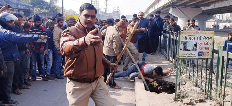अचानक सड़क धंसने से 25 फीट गहरे गड्ढ़े में समाया युवक