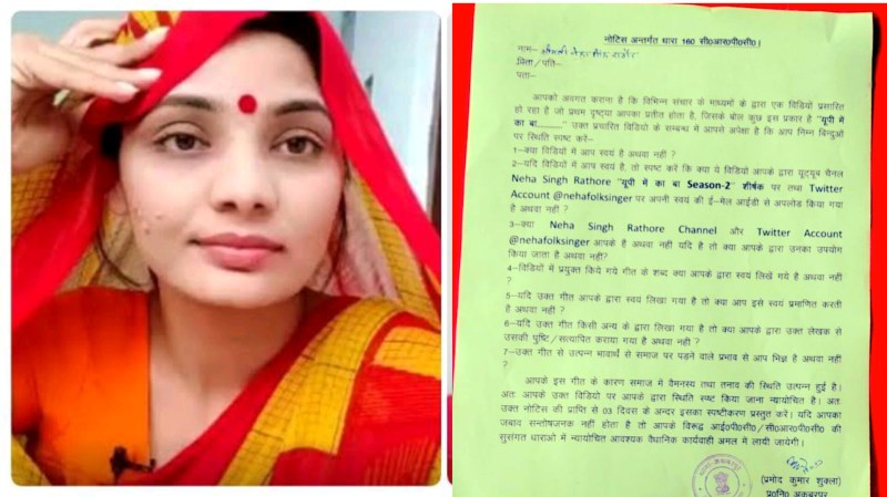 "यू पी में का बा!"पर नेहा सिंह राठौर को पुलिस का नोटिस, 3 दिन में देना है जवाब
