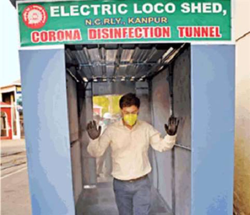कानपुर। देश में हुनर की कोई कमी नहीं है, जरूरत है तो पे्ररणा और मौके की। अगर मौका मिल जाए तो देश के हुनरमंद क्या नहीं कर सकते। ऐसा ही कुछ किया है रेलवे लोकोशेड के कर्मचारियों ने। उन्होंने महज एक वायरल वीडियो से प्रेरणा लेकर एक ऐसा टनल तैयार किया है जो सेंसरबेस और ऑटोमेटिक है। इससे गुजरने वाला हर व्यक्ति पूरी तरह सेनेटाइज होकर ही बाहर निकलता है। इसे खास तकनीक के तहत तैयार किया है, जिससे काफी कम समय लगता है।