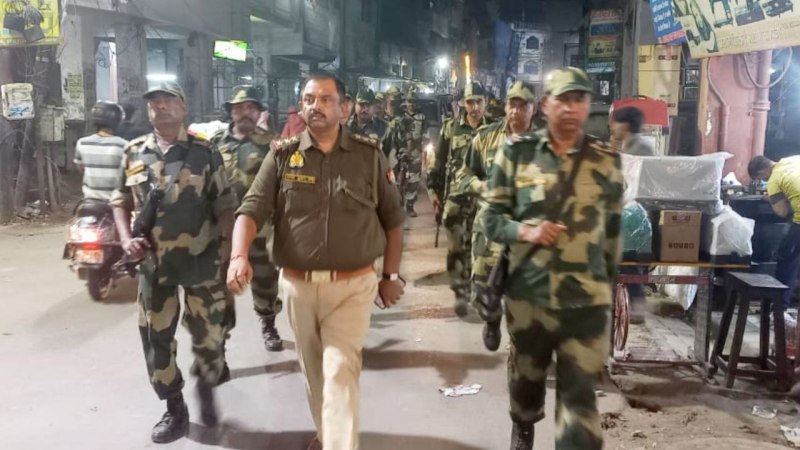 बजरिया थाना क्षेत्र के क्रिटिकल पोलिंग सेंटर एरिया का फ्लैग मार्च