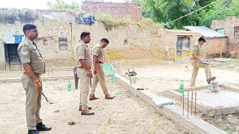 कानपुर में एक घर के आंगन में दबा मिला कंकाल।