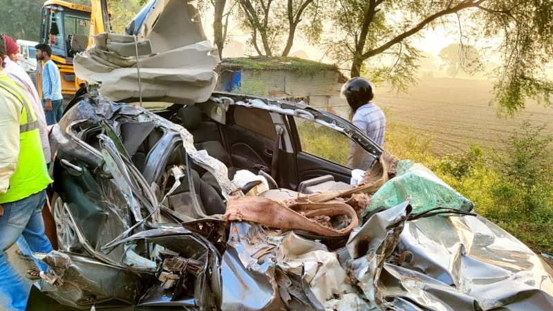 NH हाईवे पर रफ्तार का कहर, भीषण टक्कर में कार सवार 1 मौत 1 घायल