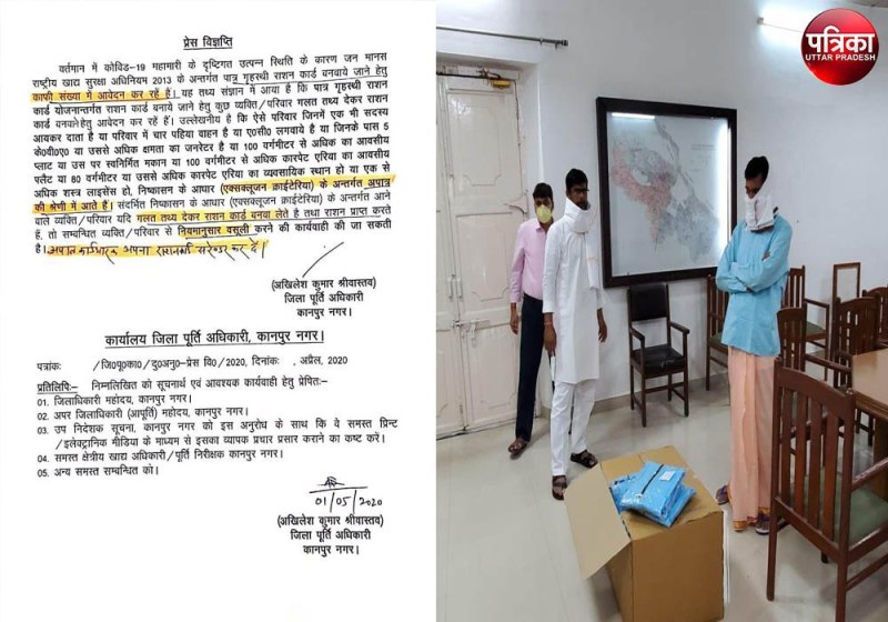 कानपुर। लाॅकडाउन के चलते प्रदेश सरकार ने एक अप्रैल 2020 से राशन कार्ड धारकों के साथ ही मनरेगा जॉब कार्ड धारकों व श्रम विभाग में पंजीकृत श्रमिकों को सरकारी राशन की दुकानों से खाद्यान वितरण के आदेश दिए थे। साथ ही पात्रों को राशनकार्ड बनाए जाने को भी कहा था, लेकिन सरकार की इस योजना का लाभ गरीब से ज्यादा अमीर उठाने लगे। जिसके बाद शुक्रवार को डीएम ब्रम्हादेव तिवारी के निर्देश पर जिला पूर्ति अधिकारी अखिलेश कुमार श्रीवास्तव ने प्रेस विज्ञप्ति जारी कर अपात्र राशन कार्ड धारकों को सरेंडन करने को कहा है। यदि वह ऐसा नहीं करते तो उन पर सख्त कार्रवाई की जाएगी।