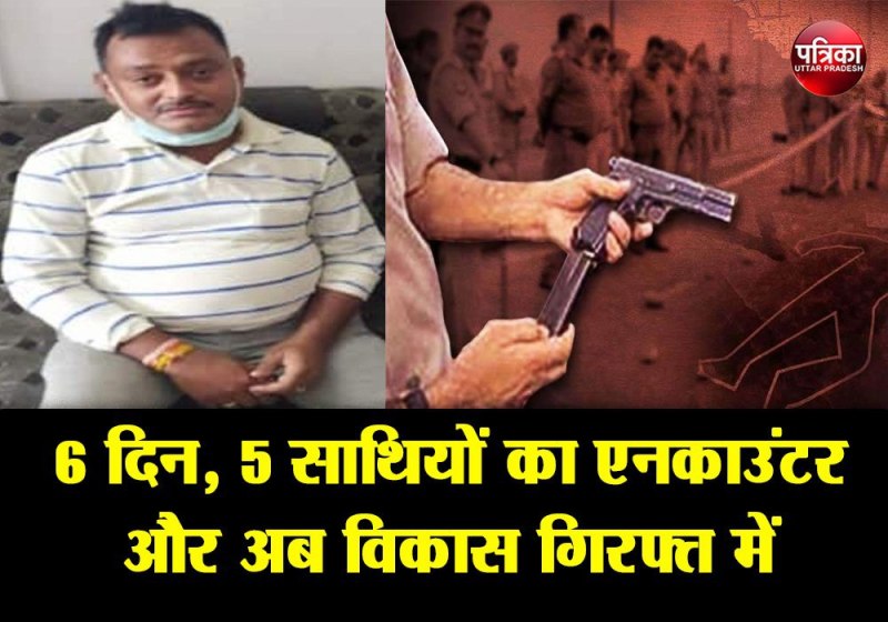 लखनऊ. छह दिन में मामा, भतीजे और तीन साथियों की बलि लेने के बाद गैंगस्टर विकास दूबे (Vikas Dubey) आखिरकार पुलिस के सामने आया। खुद को पुलिस (Police) की नजर के बचाने के लिए उसने कानपुर और हरियाणा के फरीदाबाद में पनाह ली। इस बीच उसके रिश्तेदार व अन्य साथी समेच पांच लोग पुलिस की बंदूक की गोलियों का शिकार बने। सबसे पहले 3 जुलाई की सुबह पुलिस ने विकास के मामा प्रेम प्रकाश व चचेरे भाई अतुल कुमार दुबे का एनकाउंटर किया। बुधवार को हमीरपुर में भतीजे अमर दुबे को पुलिस ने मार गिराया। गुरुवार की सुबह इटावा और कानपुर में विकास दुबे के दो और साथी प्रभात मिश्रा व रणवीर शुक्ला मुठभेड़ में मारे गए।