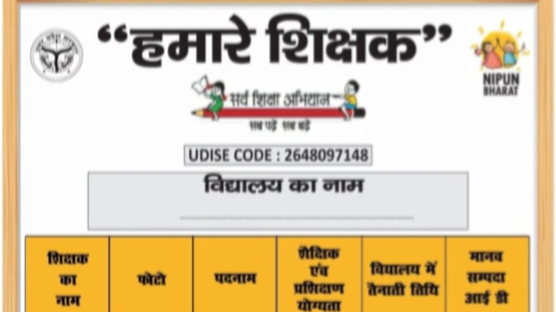 बेसिक शिक्षा रिद्धी पाण्डेय ने सभी खंड शिक्षा अधिकारियों को इस बाबत निर्देश जारी कर दिए हैं। इस बोर्ड पर स्कूल के शिक्षकों के नाम, फोटो, पदनाम, शैक्षिक योग्यता, स्कूल में तैनाती का वर्ष और मानव संपदा आईडी लिखा जाएगा।