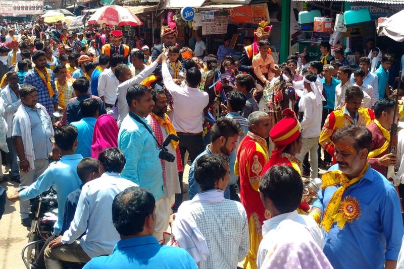 विवाह सम्मेलन के तहत ब्राह्मण धर्मशाला से भगवान परशुराम की पूजा अर्चना के बाद बारात की शोभायात्रा शुरू हुई, जिसमें घोड़ों पर सवार दूल्हों के साथ बैण्ड बाजे और डीजे की धुन पर बाराती महिला-पुरूष नाचते गाते चल रहे थे। शोभायात्रा के आगे चल रहे भगवान परशुराम के रथ पर युवाओं की टोली जयकारे लगा रही थी। शोभायात्रा डेम्परोड, चौपड़ सर्किल व झारेड़ा रोड होकर विवाह स्थल पर बनी अवधपुरी में पहुंची।
