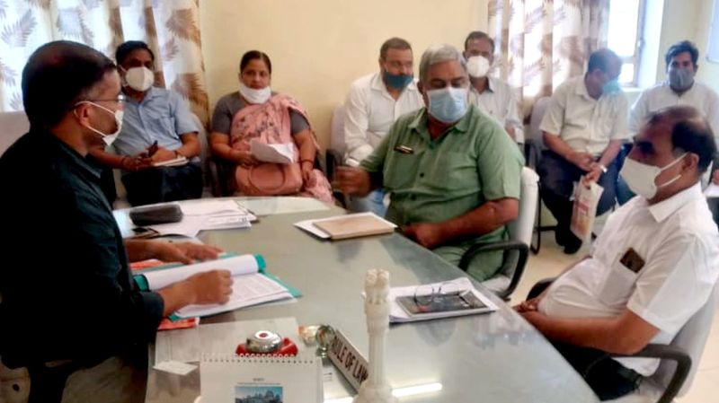 हिण्डौनसिटी. उपखंड कार्यालय में मानसून की तैयारियों पर अधिकारियों से चर्चा करते एसडीएम।
