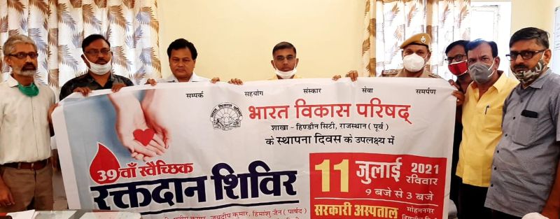 हिण्डौनसिटी. भारत विकास परिषद् की स्थानीय शाखा की ओर से 39 वां स्वैच्छिक रक्तदान शिविर 11 जुलाई को मोहन नगर स्थित राजकीय चिकित्सालय में लगेगा। शिविर के बैन का विमोचन सोमवार को उपखंड कार्यालय में एसडीएम अनूप सिंह द्वारा किया गया।
