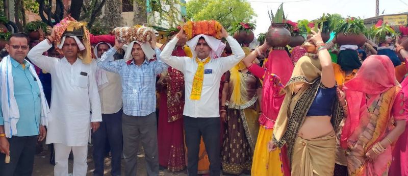 प्रमुख आचार्य पं. सतीश शास्त्री ने बताया कि सुबह तपोभूमि आश्रम पर वैदिक मंत्रोच्चार के साथ कलश पूजन हुआ। विधि विधान से पूजन के बाद गांव के विभिन्न मार्गों से बैंड बाजों के साथ कलश यात्रा निकाली गई। जिसमें रंग-बिरंगी पोशाकों में सजी 251 महिलाएं सिर पर कलश व नारियल धारण कर चल रहीं थी। महिलाओं ने भजनों पर खूब नृत्य किया। जयकारे औरभजनों से पूरे गांव का माहौल भक्तिमय हो गया। कलश यात्रा का जगह-जगह पुष्पवर्षा से स्वागत किया गया।