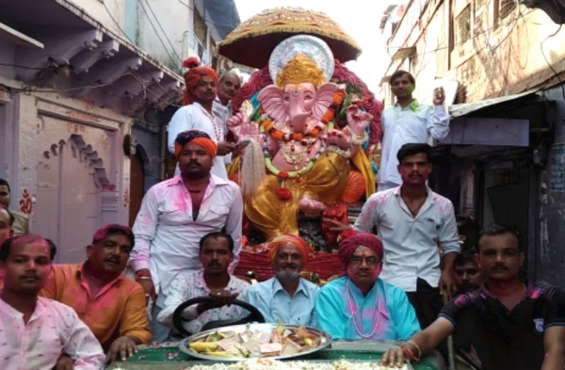 शनिवार को समापन के तहत तीसरे पहर गणेश गेट से विसर्जन यात्रा शुरू हुई। इस मौके पर एक रथ में गणेश प्रतिमा को विराजित किया गया, वहीं अन्य वाहनों में झांकियां सजाई गई। झांकियों में शामिल कुछ कलाकार नृत्य करते चल रहे थे, तो युवक अबीर-गुलाल उड़ाते आगे बढ़े । विसर्जन यात्रा को देखने के लिए ना केवल बाजारों में भीड़ नजर आई, बल्कि घर-दुकानों की छतों पर भी लोगों की भीड़ रही। युवा नाचते-गाते और जयकारे लगाते चले। वहीं लोगों ने यात्रा का रास्ते में जगह-जगह स्वागत किया। विर्सजन यात्रा गणेश गेट से रवाना होकर भूडारा बाजार, बड़ा बाजार, अनाज मण्डी, फूटाकोट, हिण्डौन गेट, गुलाब बाग होते हुए करीब चार किलोमीटर दूर पांचना के बड़ा पुल पर पहुंची, जहां श्रद्धालुओं ने विधि विधान से गणेश प्रतिमा को विसर्जित किया।