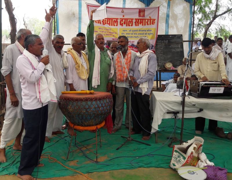 हिण्डौनसिटी. हेला ख्याल दंगल में रचानाओं की प्रस्तुति देते गायक।