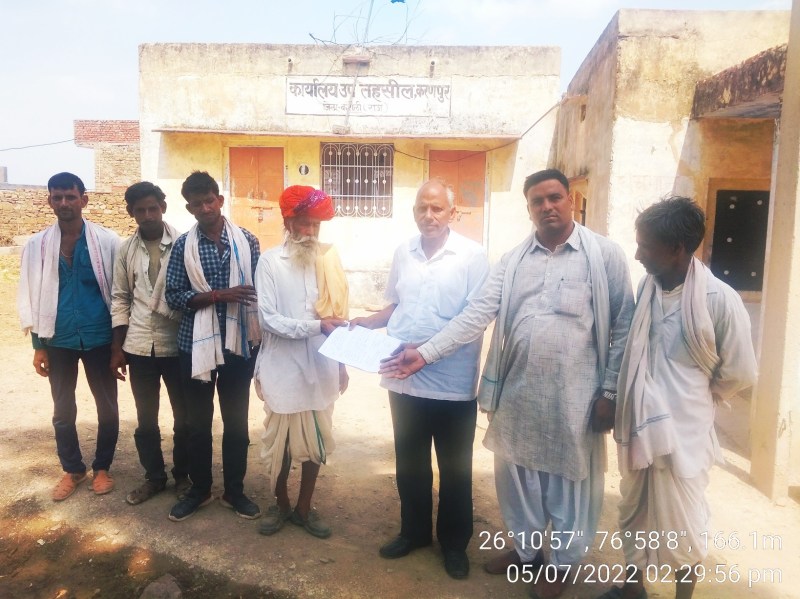 चिरचिरी गांव के ग्रामीणों ने करणपुर नायब तहसीलदार महेंद्र कुमार मंगल को जिला कलक्टर के नाम ज्ञापन सौंप समस्या के समाधान के मांग की। ज्ञापन देने आए ग्रामीणों ने बताया कि ऑनलाइन रिकॉर्ड में उनको किसी अन्य जाति का बता दिया गया है।