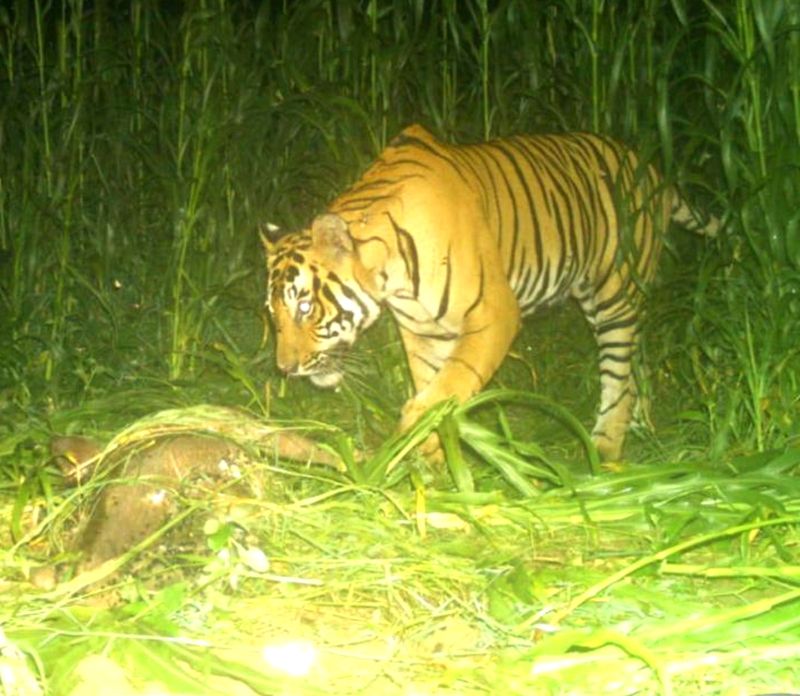 क्षेत्रीय वन अधिकारी मोहनलाल सैनी ने बताया कि टाइगर का मुवमेंट अमरगढ़-रामठर क्षेत्र में बना हुआ है, जिसकी लगातार निगरानी की जा रही है। टाइगर ने दो दिन पहले अमरगढ़-रामठरा के बीच खेतों में एक जंगली सूअर का शिकार भी किया है। विभाग की ओर से लगाए ट्रेप कैमरे में वह शिकार को खाता हुआ नजर आ रहा है।