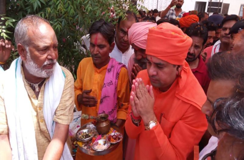 इससे पहले रविवार को मंदिर के शुभारम्भ कार्यक्रमों के तहत नाथ सम्प्रदाय की अस्थल पीठ के मंहत और अलवर के सांसद बालक नाथ ने नवनिर्मित मंदिर पर ध्वजा फहराई। ध्वजा फहराने से पहले सांसद ने वैदिक मंत्रोच्चारण के साथ विधि विधान से ध्वज पूजन किया।