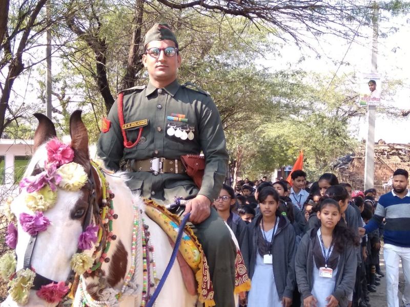 हिण्डौनसिटी. नेताजी सुभाषचंद बोस की जयंकी पर गुरुवार को विद्यालयों में अनेक कार्यक्रम हुए। प्रार्थना सभाओं में हुई संगोष्ठियों ने शिक्षकों व विद्यार्थियों ने नेताजी व आजाद हिंद फौज को लेकर विचार व्यक्त किए। समीप के गांव सूरौठ व महू गांव के आदर्श विद्या मंदिर द्वारा नेताजी सुभाष की सजीव झांकी सजा की पथ संचलन निकाला। बोस के वेश से सज घुडसवार छात्र की अगुआई में पथ संचलन में कदम मिलाते विद्यार्थी आजाद हिंद के सेनानियों की झलक साकार कर रहे थे।
