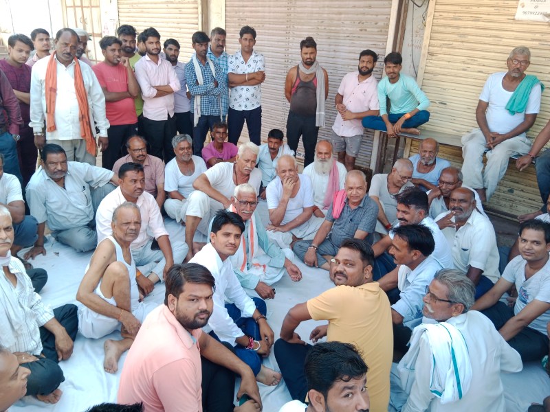 दुकानों के आगे रैलिंग लगाने का विरोध, दिया धरना, बाजार रखा बंद