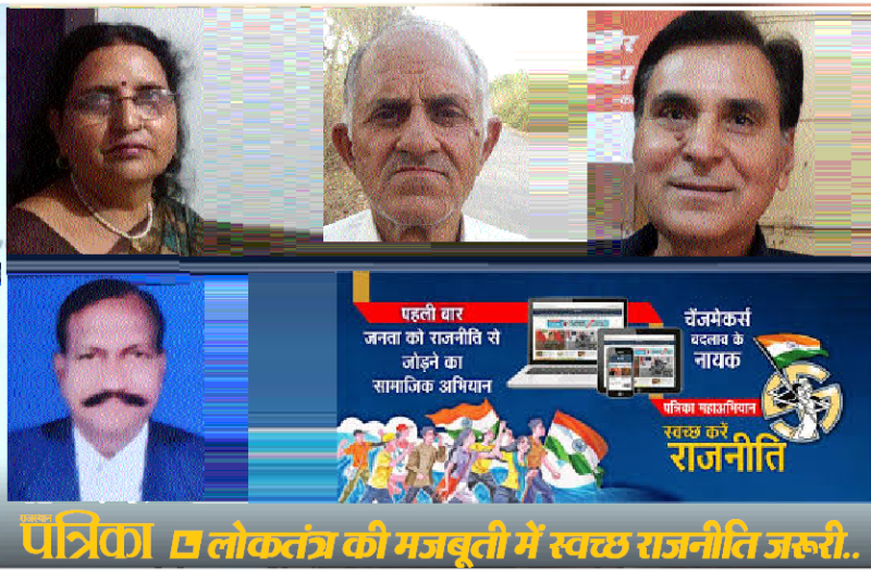 यही वजह है कि राजनीति में अच्छे लोग नहीं आ पा रहे हैं। समाज की यह जिम्मेदारी बनती है कि वह अच्छे लोगों का चुनकर आगे लाएं, जिससे समाज का भला हो सके। पत्रिका की यह मुहिम समाज की दिशा और दशा तय करने वाली होगी। सामाजिक कार्यकर्ता बबलू शुक्ला ने कहा कि पत्रिका की यह मुहिम देश हित में है। हम सबको सजग रहकर जाति-पाति से परे हटकर राजनीति को स्वच्छ बनाने के लिए आगे आना होगा। धर्म और जाति के बीच फंसकर लोग अच्छे व्यक्ति को दरकिनार कर देते हैं। इससे किसी का भला नहीं होगा। राजनीति को स्वच्छ बनाने की जिम्मेदारी हम सबकी है, जो हमें बखूबी निभानी चाहिए।