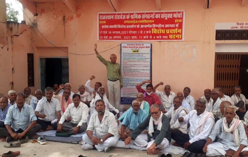राजस्थान रोडवेज के श्रमिक संगठनों के संयुक्त मोर्चा के प्रदेश स्तरीय आह्वान पर ग्यारह सूत्री मांगों को लेकर बुधवार को रोडवेज कर्मियों ने हिण्डौन डिपो के मुख्य द्वार पर धरना दिया। इस दौरान श्रमिक संगठनों के पदाधिकारियों व सेवानिवृत कर्मचारियों ने रोडवेज विरोधी नीतियों को लेकर राज्य सरकार को कोसा। साथ ही नारे लगा कर विरोध जताया। दो दिवसीय विरोध के तहत गुरुवार को दूसरे दिन भी डिपो के बाहर धरना दिया जाएगा।