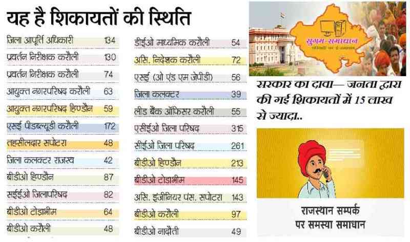 लोग उम्मीद लेकर संपर्क पोर्टल पर शिकायत दर्ज करा रहे हैं। लेकिन शिकायतों के निस्तारण की मंद रफ्तार से इनकी संख्या में लगातार इजाफा हो रहा है। ऐसे में लोग शिकायत संबंधी कागज विभागों में लेकर पहुंच रहे हैं और इधर से उधर चक्कर लगा रहे हैं। ऐसे में योजना का उद्देश्य पूरा होता नहीं दिख रहा। कई मर्तबा इस संबंध में राज्य स्तर पर बैठकें भी हुई हैं और इसमें लापरवाही बरतने वाले अधिकारियों को सख्त हिदायत दी गईहै, लेकिन ढर्रा बदलने का नाम नहीं ले रहा है। अकेले करौली जिले में करीब ४ हजार शिकायतें विभिन्न विभागों में पड़ी हैं, जिनका निस्तारण होना बाकी है।