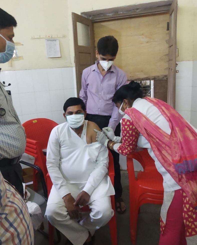 इस दौरान प्रमुख चिकित्सा अधिकारी डॉ. दिनेश गुप्ता, वरिष्ठ चिकित्सक डॉ. गोविन्द गुप्ता, चिकित्सालय में कोविड प्रभारी जगमोहन माली, मेल नर्स प्रथम मोहनलाल शर्मा मौजूद रहे। विधायक ने चिकित्सालय पहुंचकर सामान्य जन की तरह पंजीयन कराया और फिर एएनएम अनीता गुप्ता ने वैक्सीनेशन कक्ष में ही उनको टीका लगाया।