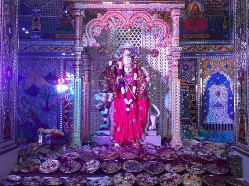 शीशमहल मंदिर में विराजित हुई दुर्गा मां की प्रतिमा, शृंगार कर सजाई छप्पन भोग झांकी