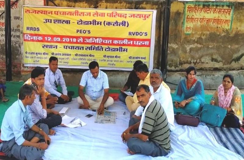 राजस्थान के करौली में धरने पर बैठ लगाए नारे,कार्मिकों की हड़ताल 14वें दिन जारी