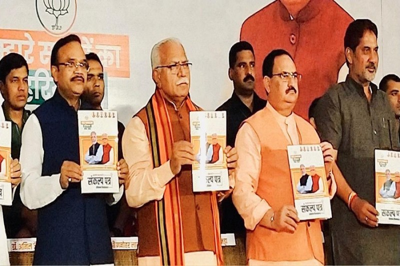 चंडीगढ़. हरियाणा के चुनावी रण में लगातार दूसरी बार सरकार बनाने की तैयारी में जुटी सत्तारूढ़ भारतीय जनता पार्टी ने किसानों, युवाओं तथा दलितों के सहारे मिशन 75 पार को हासिल करने की तैयारी कर ली है। भाजपा के संकल्प पत्र में इन्हीं वर्गों पर फोकस किया गया है। भाजपा का संकल्प-पत्र रविवार को चंडीगढ़ में पार्टी के राष्ट्रीय कार्यकारी अध्यक्ष जेपी नड्डा की मौजूदगी में जारी किया गया। इस मौके पर सीएम मनोहर लाल खट्टर, विस चुनाव प्रभारी व केंद्रीय मंत्री नरेंद्र सिंह तोमर, पार्टी के हरियाणा मामलों के प्रभारी डॉ.अनिल जैन, केंद्रीय मंत्री राव इंद्रजीत सिंह व रतनलाल कटारिया, प्रदेशाध्यक्ष सुभाष बराला व कैबिनेट मंत्री अनिल विज मुख्य रूप से मौजूद रहे। संकल्प-पत्र कमेटी के चेयरमैन व कृषि मंत्री ओपी धनखड़ ने बताया कि करीब पौने दो लाख लोगों के सुझावों के आधार पर यह संकल्प-पत्र तैयार किया गया।