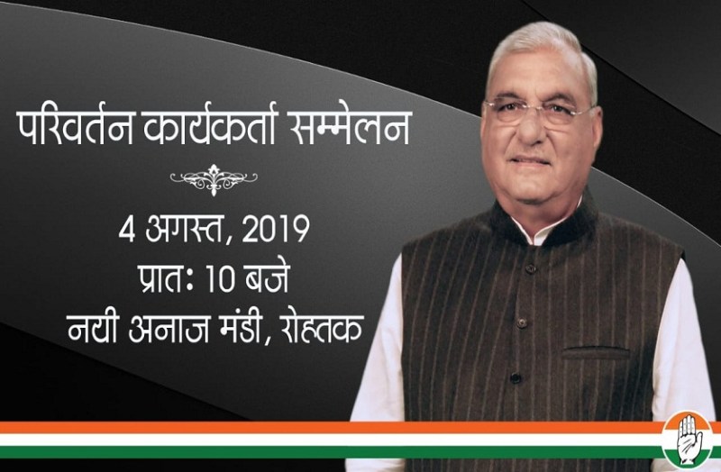 कांग्रेस अध्यक्ष अशोक तंवर ( Ashok Tanwar ) इस महापरिर्वन रैली से पल्ला झाड़ चुके हैं, लेकिन हुड्डा ने इसे सफल बनाने के लिए 4 अगस्त ( August ) को रोहतक में कार्यकर्ता सम्मेलन बुलाया है। इसमें हरियाणा ( Haryana ) के सभी जिलों से हुड्डा के खास समर्थक शामिल होंगे। कार्यकर्ता सम्मेलन के लिए सोशल मीडिया ( Social Media ) पर कुछ पोस्टर वायरल किए जा रहे हैं। इनमें कार्यकर्ताओं से रोहतक नई अनाज मंडी पहुंचने की अपील की गई है, लेकिन राहुल गांधी ( Rahul Gandhi ), सोनिया गांधी ( Sonia Gandhi ), पार्टी प्रभारी गुलाम नबी आजाद ( Azad ) समेत किसी भी नेता का फोटो नहीं है। पोस्टरों पर हाथ के पंजे का निशान तो है, लेकिन भूपेंद्र सिंह और दीपेंद्र हुड्डा के अलावा किसी अन्य का फोटो नहीं है।