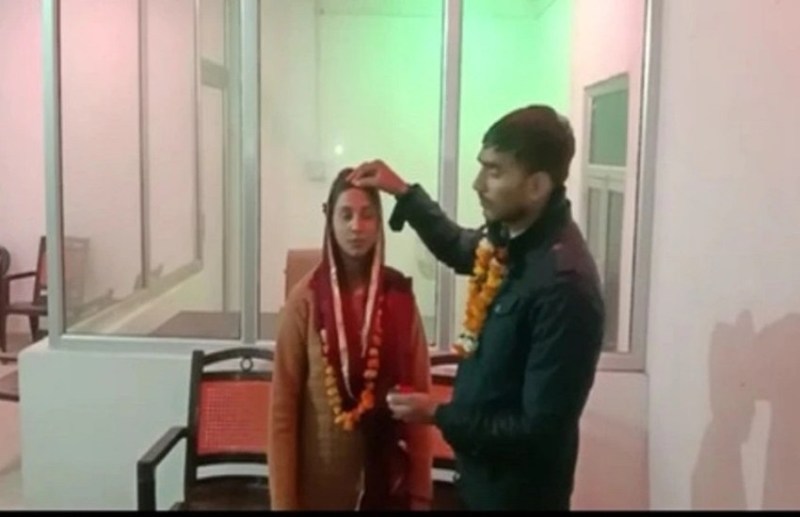 लड़का वर्तमान में पीएसी अलीगढ़ में तैनात है। मुकेश और सपना की मुलाकात करीब तीन महीने पहले आगरा में पुलिस दारोगा भर्ती परीक्षा के समय हुई थी। परीक्षा के दौरान ही दोनों एक दूसरे को दिल दे बैठे थे। परीक्षा के बाद भी दोनों के बीच कई मुलाकातें हुईं। फिर इसी दौरान दोनों ने एक दूसरे के साथ पूरी जिंदगी बिताने की ठान ली। लेकिन परिजन इस बात के लिए तैयार नहीं थे। जिसके बाद पुलिस अधीक्षक रोहन प्रमोद बोत्रे की कुशल काउंसलिंग में दोनों ही पक्ष राजी हो गए और मुकेश और सपना शादी के बंधन में बंध गए।