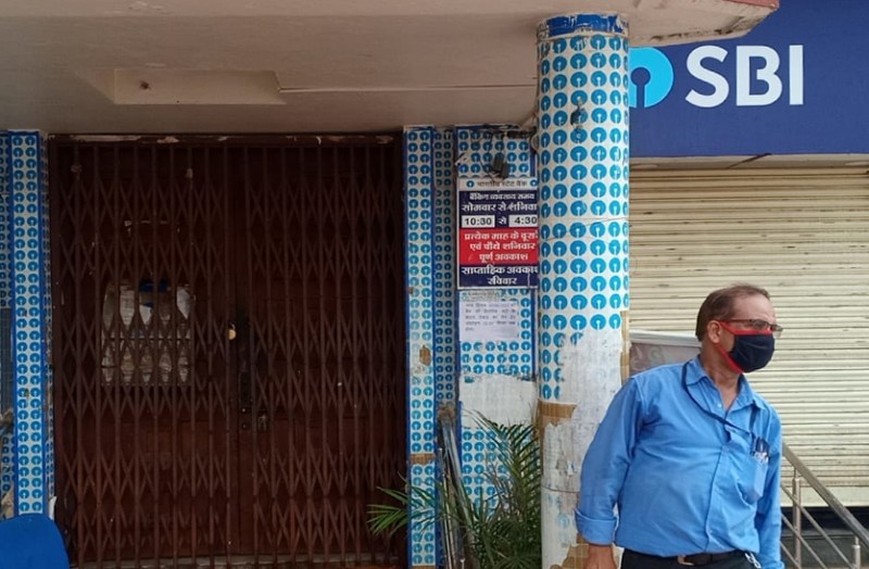 स्टेट बैंक मुख्य शाखा का बंद दरवाजा, सील.