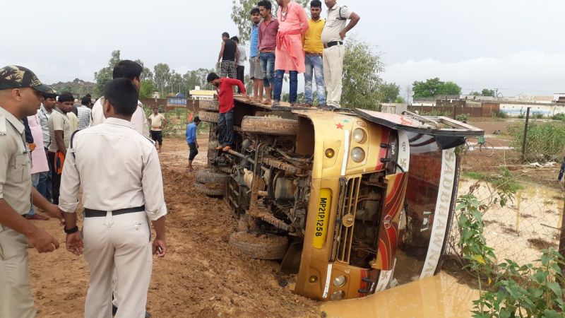 कटनी. कटनी से बहोरीबंद आ रही एक यात्री बस बहोरीबंद के पास ही मोटर साइकिल को बचाने के चक्कर में साइड सोल्डर में धंसने से पलट गई। दुर्घटना में बस में सवार चार लोगों को गंभीर चोट आई हैं। जिन्हें जिला अस्पताल रेफर किया गया। जानकारी के अनुसार कटनी से बहोरीबंद आ रही सद्भावना ट्रैवल्स की बस क्रमांक एमपी 21 पी 1258 दोपहर को जैसे ही बहोरीबंद शराब दुकान के पास पहुंची एक मोटर साइकिल सवार को बचाते हुए चालक ने क्रासिंग ली। उसी दौरान साइड सोल्डर में बस के पहिए धंस गए और वाहन पलट गया। वाहन के पलटते ही चीख पुकार मच गई और आसपास के लोग बचाने दौड़े। साथ ही पुलिस को सूचना दी गई। ग्रामीणों की मदद से पुलिस ने घायलों को बाहर निकाला। बस में लगभग एक सैकड़ा यात्री सवार थे।