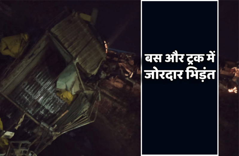 बस और ट्रक में जोरदार भिड़ंत, पुलिया के नीचे गिरा ट्रक, कई यात्री घायल