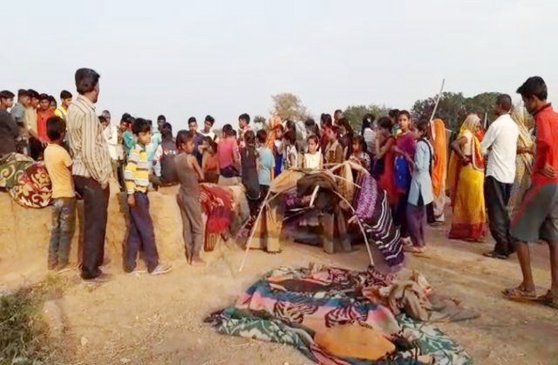 मौके पर मौजूद ग्रामीण।