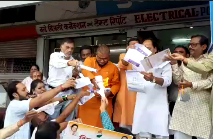 लगातार बढ़ रहे बिजली के दामों का विरोध : कांग्रेस ने लालटेन जलाकर किया बिजली दफ्तर के बाहर प्रदर्शन, बिलों की होली जलाई