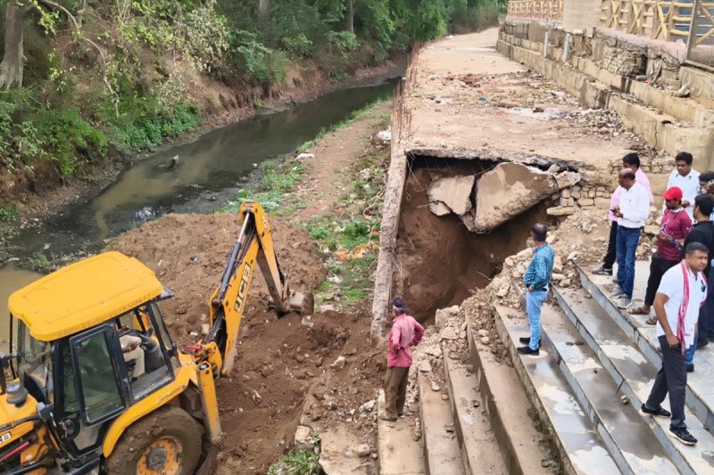 जानकारी के अनुसार बिल्डर प्रवीण कुमार बजाज ‘पप्पू’ द्वारा खिरहनी में रपटा नदी के पास बजाज इंक्लेव के नाम से कालोनी डेवलप की जा रही है। इस कालोनी की जमीन रपटा प्राकृतिक नाला से सटकर है। पूर्व में यहां बिल्डर द्वारा नाला से कुछ दूरी पर बाउंड्रीवाल का निर्माण कराते हुए घाट का सौंदर्यीकरण किया गया। विसर्जन कुंड बनाया गया और शहरवासियों को एक स्वच्छ स्थान दिया गया लेकिन गत वर्ष चले सफाई अभियान के बाद बिल्डर ने रपटा पर ही कब्जा कर लिया गया। रपटा में जिस स्थान पर घाट बनाया गया था वहीं से करीब 3 मीटर चौड़ी और 200 मीटर लंबे कांक्रीट का निर्माण कर दिया गया।