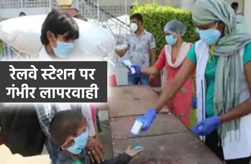 VIDEO : PPE किट तो छोड़िये स्टेशन पर बिना मास्क और सैनिटाइजर के लोगों की जांच कर रहे हैं कर्मचारी