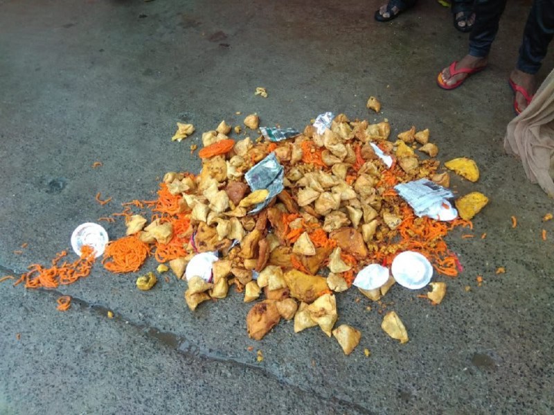 Hundreds of samosas and jalebi thrown in the dustbin