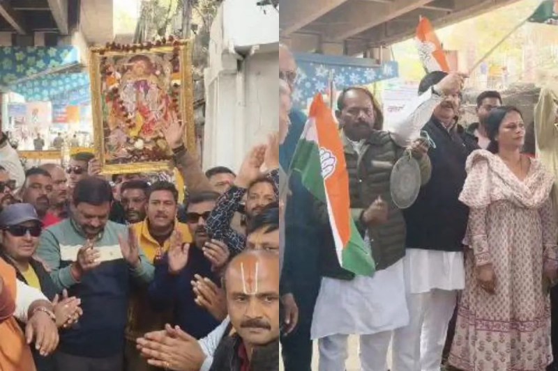 bjp mla plays aarti on DJ while congress protest (फोटो- Patrika.com)
